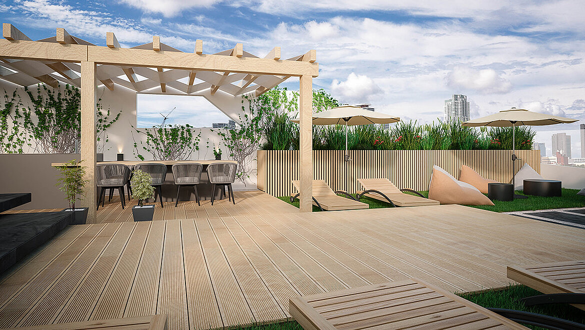 - Outdoor Wohnzimmer: Modulare Möbel, integrierte Beleuchtung und Außenküchen verwandeln die Dachterrasse in einen vollwertigen Wohnraum. Für Unternehmen können Lounge Bereiche und Grünflächen die Aufenthaltsqualität der Mitarbeitenden steigern.