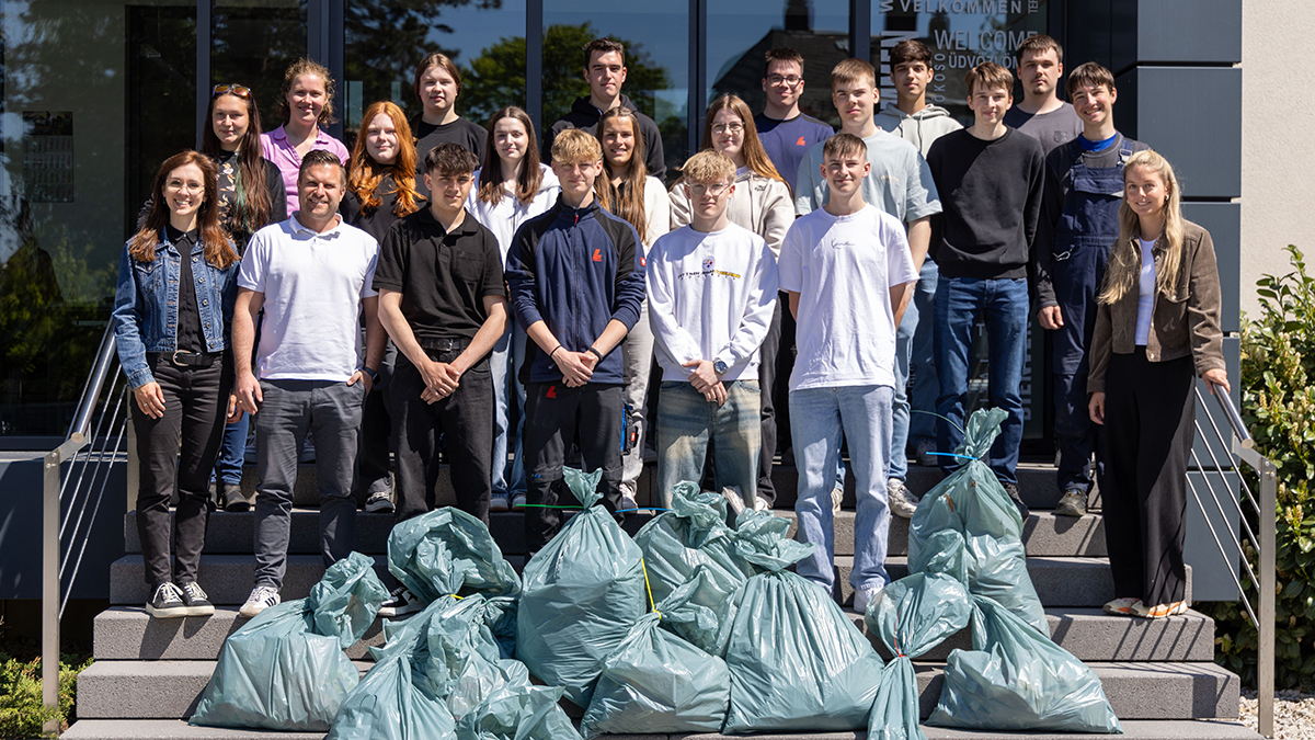 Im Anschluss wurden die Azubis selbst aktiv: In Kleingruppen, ausgestattet mit Müllsäcken, Handschuhen und Greifzangen, sammelten sie Abfälle rund um die Unternehmensstandorte in Rehau. Mit sichtbarer Begeisterung trugen sie dazu bei, die Region sauberer und lebenswerter zu machen. Insgesamt wurden zwölf Müllsäcke und rund 40 Kilogramm Müll eingesammelt.